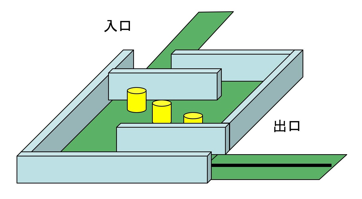 なお,迷路内の障害物,標的の位置は競技開始前に決めることにします.