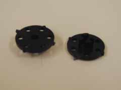 ギヤボックスを2個組み立てると,左下のような付属品が残ります.その中から部品番号A5の「円形アーム」と呼ばれる,6個穴の開いた円板を2つ確保します.この部品はロータリーエンコーダを自作するのに使います.
